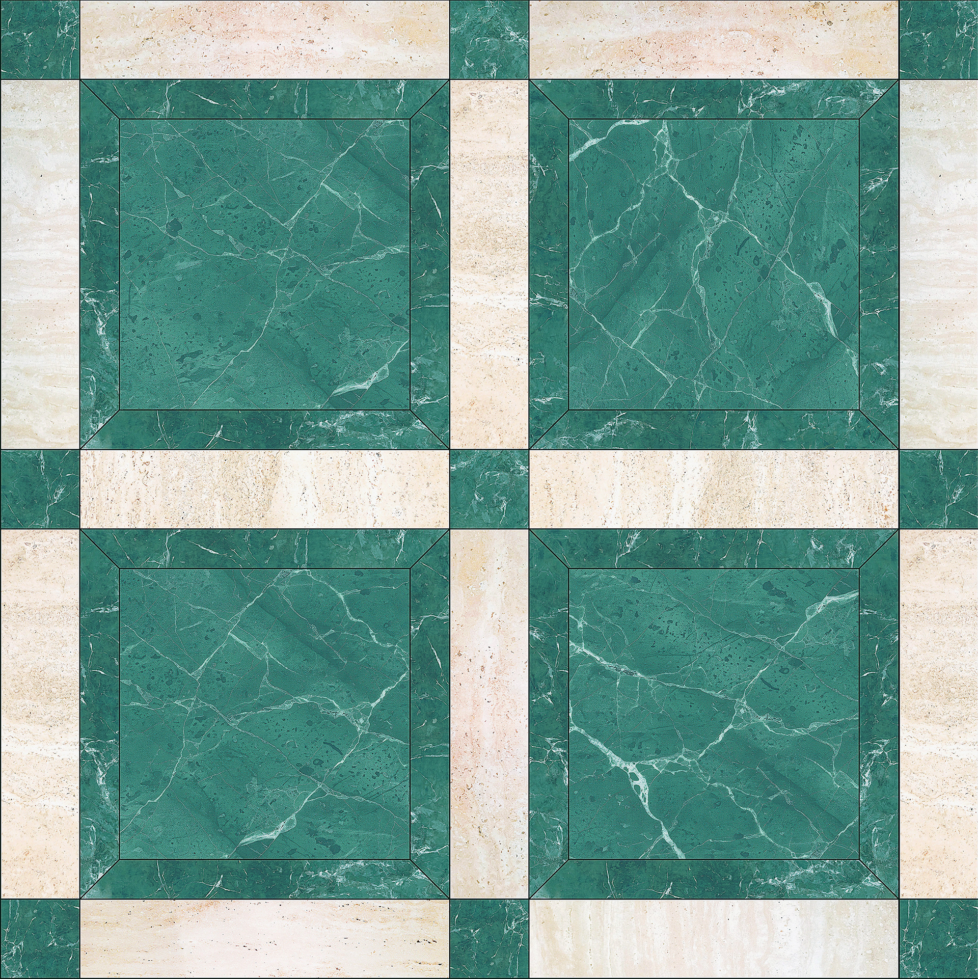 de marbre vert italien et de travertin.